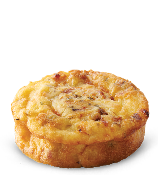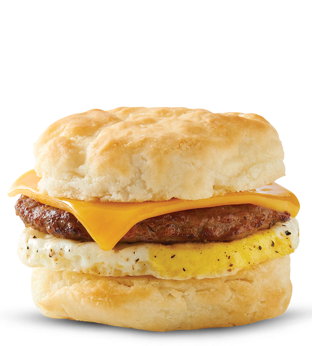 Savory sausage, a cage-free fried egg, and cheddar cheese on a buttermilk biscuit.