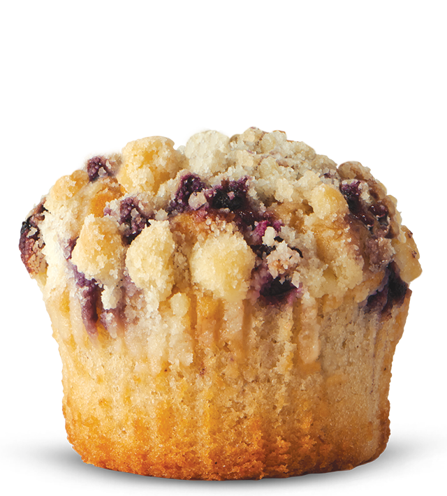 A moist, tender muffin loaded with whole blueberries; topped with streusel.