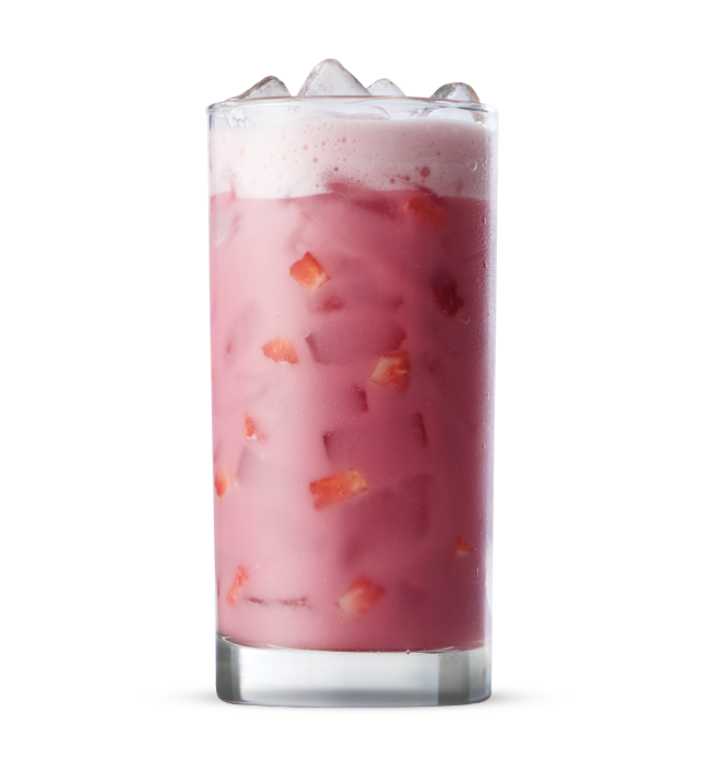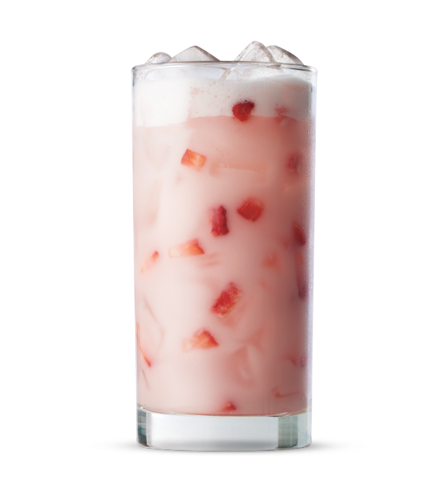 Coconutmilk shaken with ice, real strawberries, vanilla flavor and a signature strawberry base created with Tractor Beverage.