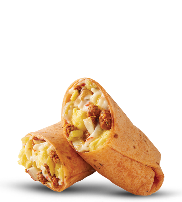 Chicken chorizo, Swiss & jack cheese, cage-free scrambled eggs, diced potatoes & green chiles, wrapped in a red pepper tortilla.