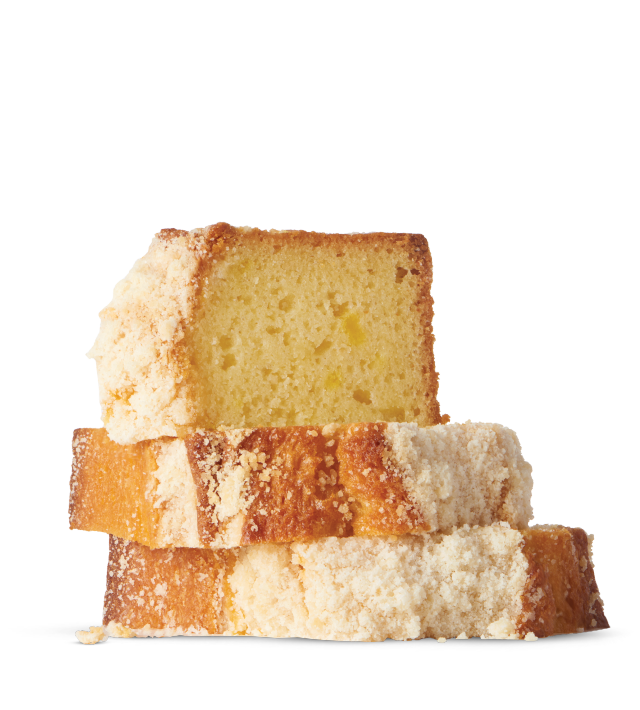 Sweet, lemon pound cake with a zesty lemon streusel topping.